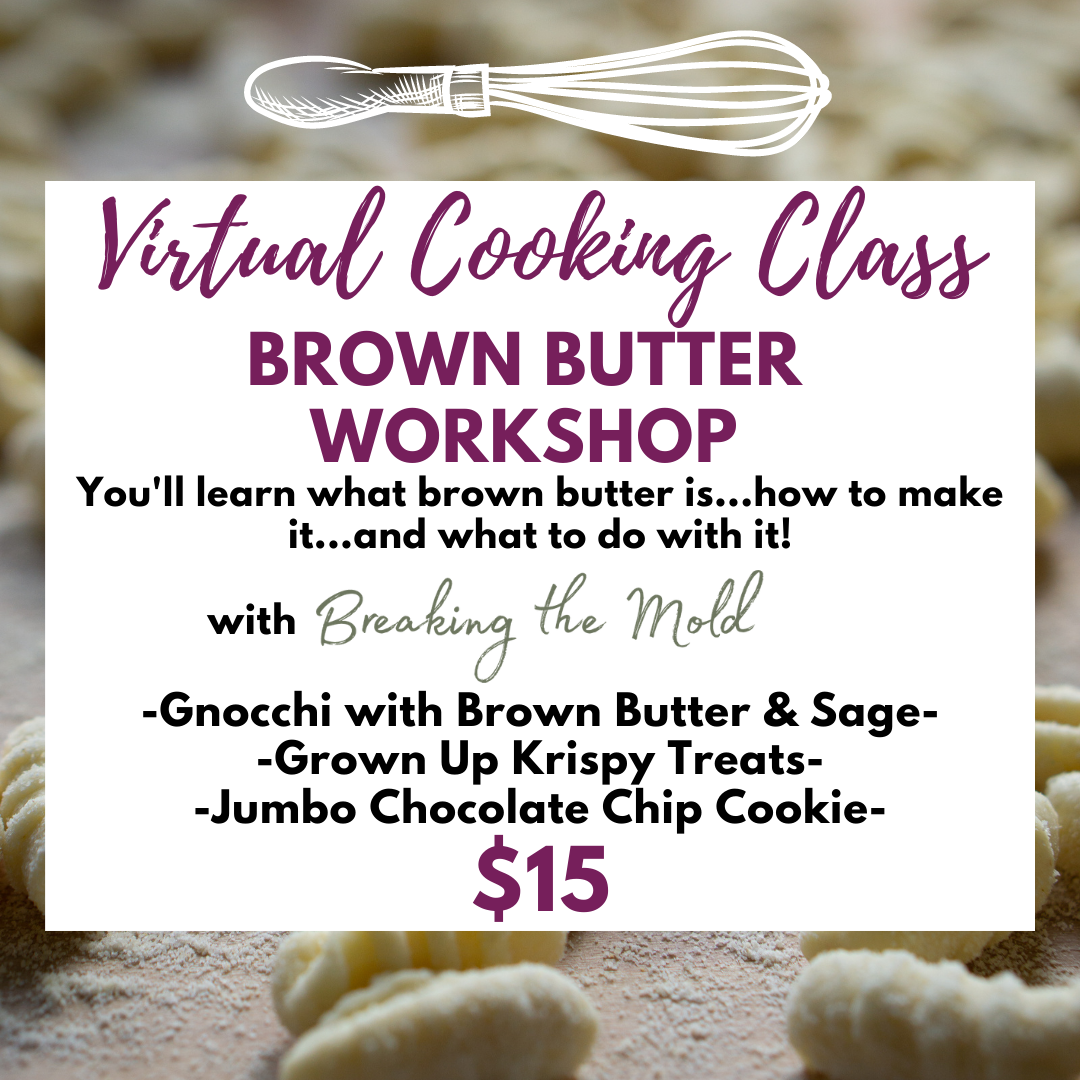 VIRTUAL LIVE CLASS with Chef Lauren of Breaking the Mold. Learn what a game changer brown butter is, how to make it & what to do with it.